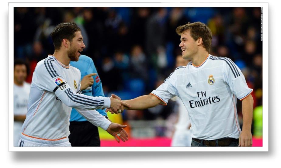 Sur la photographie qui illustre ce billet, Magnus Carlsen, grand amateur de sports, souhaite bonne chance au capitaine du Real de Madrid Sergio Ramos avant le coup d'envoi d'un match en 2013.